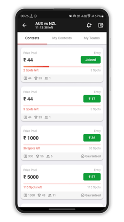 On Ante11, you create your fantasy team based on a real-life match, score maximum points and win exciting cash prizes!